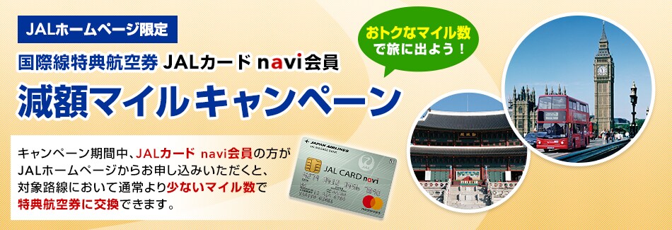 各種条件達成で最大3,000マイルプレゼント!JALカード naviでマイルをためて、旅行をもっとおトクに!