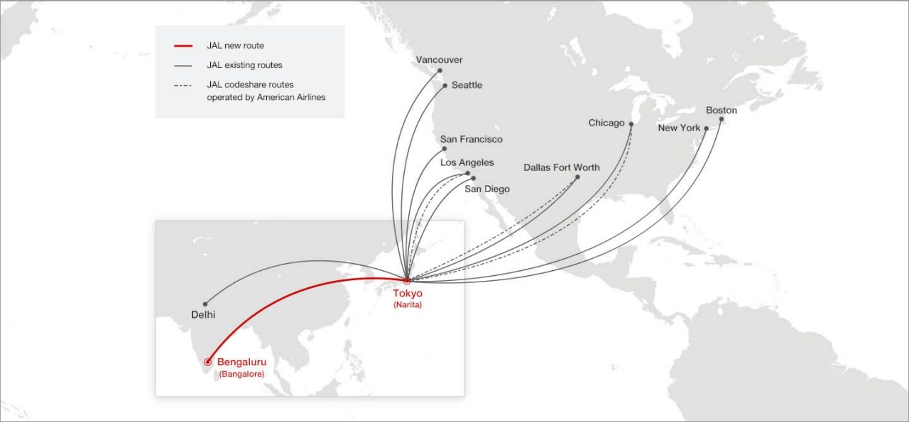 Japan Airlines (JAL) will launch daily nonstop service between Tokyo (Narita) and Bengaluru with the Boeing 787-8 Dreamliner, providng a new and convenient option to travel from North America to the southern region of India.