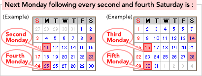 Between 0:10 a.m. - 0:50 a.m. next Monday following every second and fourth Saturday (Japan Time)