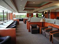 On August 1, 2004, Japan Airlines unveiled their "new" Sakura Lounge and Sakura Lounge Luana at the Daniel.K.Inouye International Airport. The 7,000 square foot facility which comfortably accommodates 225 passengers, is conveniently located on the 3rd floor of the main terminal above Stinger Ray's Restaurant; just minutes away from the Japan Airlines check-in counters. The Sakura Lounge provides first class, business class, and JAL Global Club members with complimentary use of an elegant and spacious area to relax and enjoy spectacular views of the garden courtyards and fishponds below. Decorated with a combination of leather and custom fabric chairs, Corian countertops, marble flooring, IT corner with Internet-ready computers, relaxation corner with two programmable massage lounges (available in September), and detailed woodwork throughout, the new Sakura Lounge is sure to please the most discriminating traveler. The Sakura Lounge Luana is a new concept for Japan Airlines in Honolulu. Connected to the Sakura Lounge, this area is for passengers traveling on qualifying economy class fares. Luana, a Hawaiian word which means to relax, and to enjoy the pleasant surroundings is decorated in a casual yet sophisticated and modern style. Complimentary services offered to customers in the Sakura Lounge Luana include an unobstructed view of the garden courtyards below, children's play area, a large 70" television and a circular bar-style seating area.In addition, both lounges feature self-serve beverage counters, wireless Internet, and use of the powder room, nursing room facility with a baby-changing table, and men's and women's restrooms, which feature warm water bidets. |