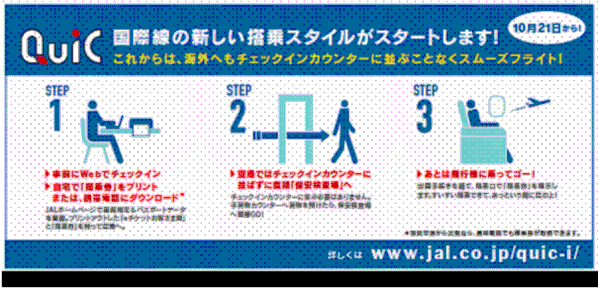 国内線でご好評いただいているダイレクト搭乗スタイル『QuiC(クイック)』を、新国際線ターミナルの移転に合わせて、2010年10月21日から羽田発国際線に導入します。