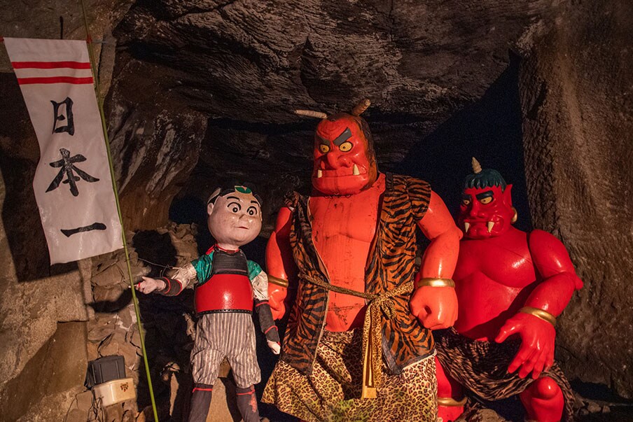 Megijima sits just off the port of Takamatsu. It is a small island—almost four kilometers long and one kilometer wide. Megijima is also called Onigashima, the Ogre Island, in the famous Momotaro story. Legend says a boy born from a peach visited the island and fought its resident ogres. Near Megijima’s highest peak is a cave said to have served as the ogres’ fortress a long time ago. You can bike to it and explore the interconnected chambers. Some of them display large statues depicting scenes from Momotaro legend.