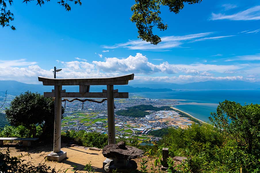 This Shinto shrine has more than a thousand years in history. You'll find mention of it in the Enghishiki, a compilation of laws and customs completed in the year 927. While many people climb to pay their respects to the deities, what draws most tourists in is the stone torii (built in 2009 to replace an old wooden gate). It serves as a frame overlooking the impressive views of Kanonji and the sea.