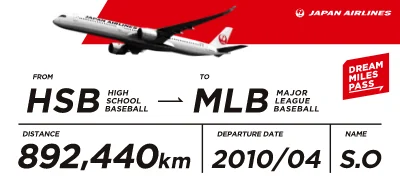 JAL「DREAM MILES PASS」は、 大谷選手が夢を叶えるまでの 総移動距離分の航空券で、 夢のために移動が必要な方を サポートするプロジェクト。 ご自身のマイルを使って、 誰かの夢を応援することもできます。