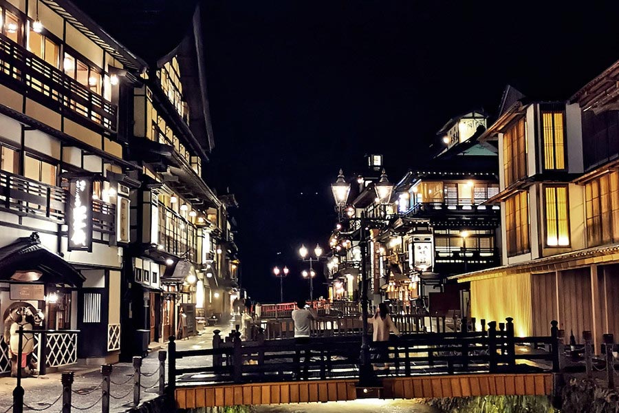 Travel to and from Ginzan Onsen in comfort with a private vehicle that will pick you up from your hotel around dusk. Upon arrival, you're free to wander the compact township at your leisure, immersing yourself in its nostalgic charms and capturing picturesque scenes on camera. Ginzan Onsen becomes especially magical once night falls, as retro gas lamps bathe the town in a warm glow. The town center also features cozy cafes and gift shops, where you can spend time sipping on a refreshing beverage, browsing souvenirs, and admiring the rustic wooden interiors.
