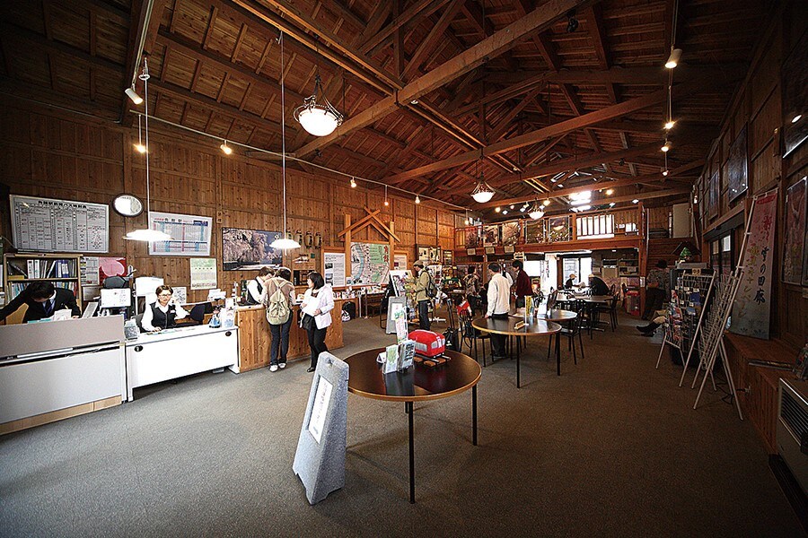 Before embarking on the second day of your adventure, take a few minutes to look around the modern, spacious train terminal that is Akita Station. From here, various attractive destinations in northern Tohoku are easily accessible—including Aomori Prefecture, the next step on our itinerary. Running on the JR Gono Line from Akita to Aomori station, take the Resort Shirakami train to Juniko Station. This delightful train features colorful, cozy seats offering spectacular views of the Aomori coastline and the mountain landscape of the Shirakami-Sanchi area, as well as a warmly designed interior that matches in perfect harmony with the local flora growing along the tracks (reserved seat tickets must be booked in advance). From here, the Konan Bus will take you to Mori-no-Bussankan Kyororo, a souvenir shop and rest area where you can find refreshment and a number of local specialties.