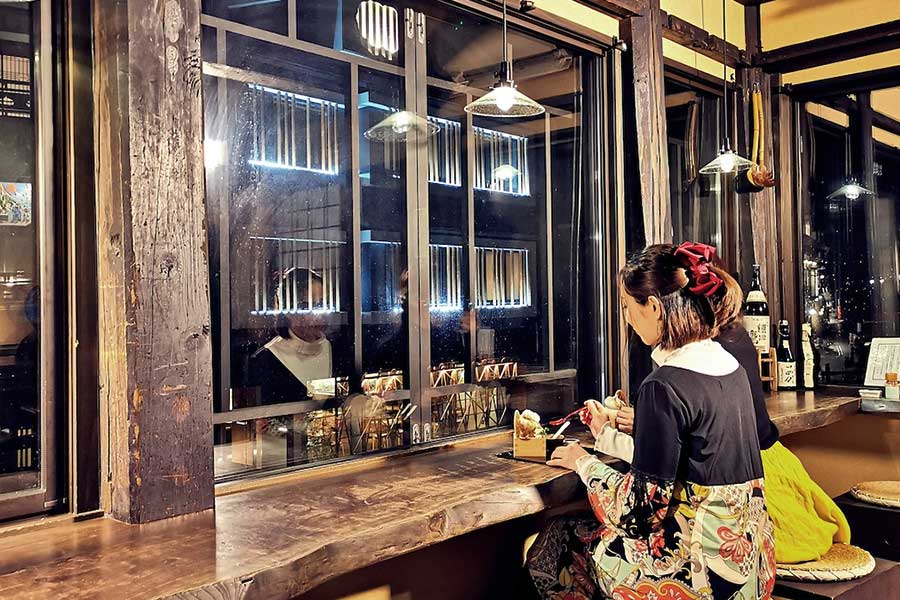 Refreshed and recharged, it’s time for a 20-minute taxi ride to Tendo Onsen to check in to your lodgings for the night. This hot spring town is known for its prolific production of shogi (Japanese chess) pieces. Keep an eye out for the various shogi motifs that decorate the sidewalks, manholes, bridges, and even public footbaths along the charming streets.