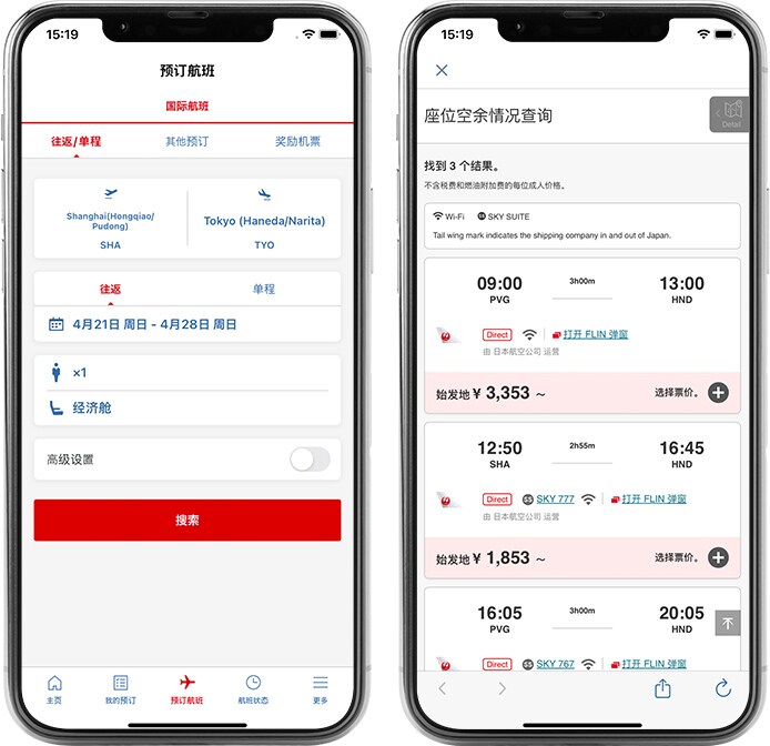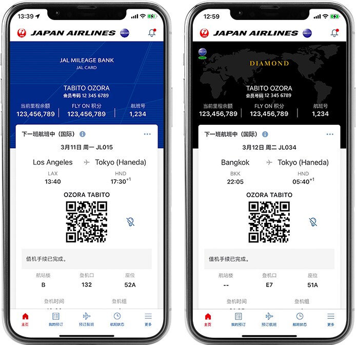 使用日航应用程序移动登机牌,您无需在机场打印登机牌便可直接登机。您还可通过移动登机牌一目了然地查看最新航班状态和登机口信息。