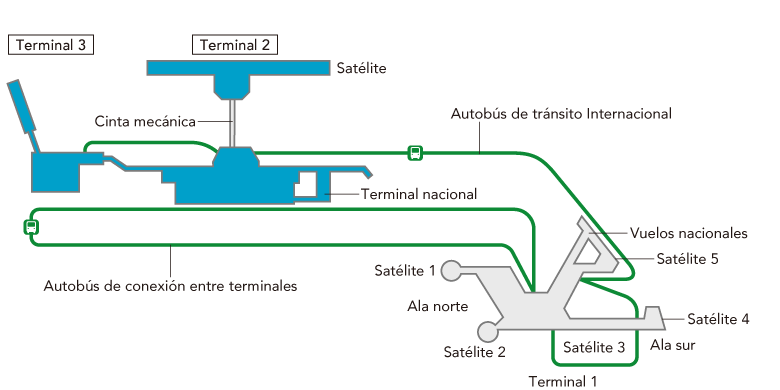 Conexiones entre vuelos nacionales y vuelos de la terminal 1