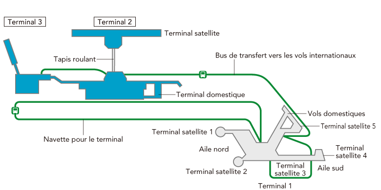 - Référez-vous au site Web de l'aéroport international de Narita (NAA) pour connaître le terminal de départ et d'arrivée de la compagnie aérienne de correspondance.