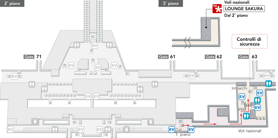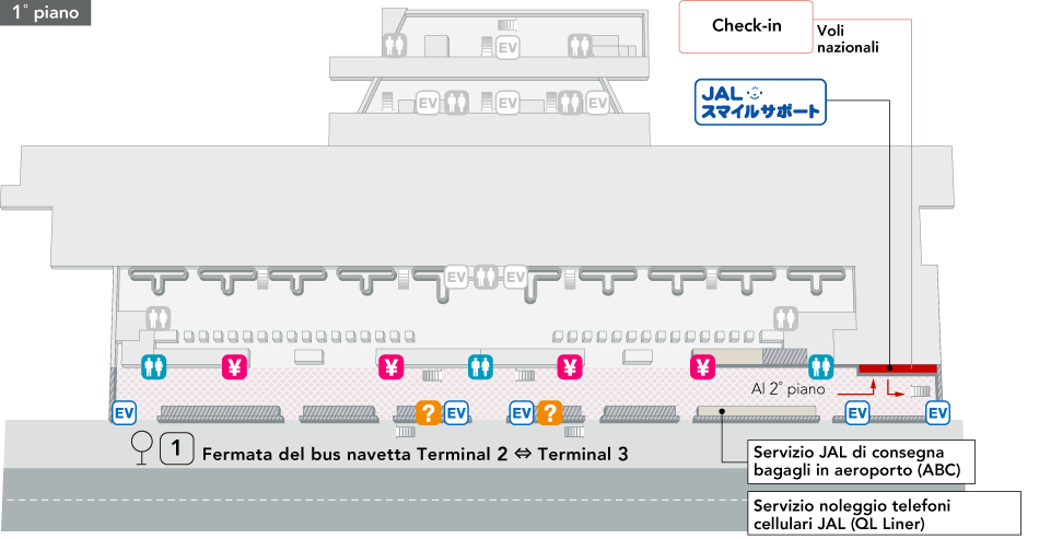 Transiti da voli nazionali JAL a voli internazionali (nel Terminal 2)