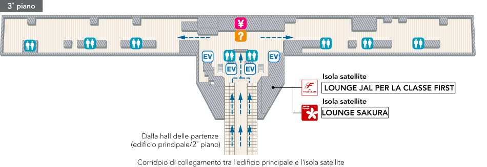 - *L'accesso alla lounge è consentito al secondo e al terzo compagno di viaggio di un cliente iscritto al programma JMB Diamond, JGC Premier, JMB Sapphire, JAL Global Club (JGC) con coupon lounge.