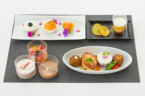 โปรดจองอาหารในเที่ยวบินเฟิร์สคลาสผ่านเว็บไซต์ JAL ก่อนเดินทาง