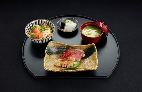 ผู้โดยสารสามารถเลือกจากอาหารทั้งหมดสี่ประเภท: แบบญี่ปุ่นและตะวันตก (เนื้อวัว/ซีฟู้ด/อื่นๆ)- *แบบตะวันตก (อื่นๆ) อาจทำจากเนื้อหมู, เนื้อไก่, เนื้อแกะ หรือวัตถุดิบอื่นๆ
