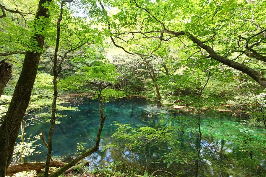 Shirakami Sanchi, a UNESCO World Heritage Site, is a mountainous area home to one of the world’s largest primeval beech forests and the stunning natural beauty of the Juniko Twelve Lakes—the area’s most stunning and sacred must-see spot. There are several hiking trails by which to explore the Juniko area—which, in fact, comprises 33 ponds in total—but the most recommended one starts at Ketoba-no-Ike Pond. Marvel at its pristine waters reflecting the verdant green of the surrounding beech trees. A stone’s throw away, you’ll find one of Juniko’s most stunning lakes, the breathtaking cobalt-blue Ao-Ike Pond. The sight of crystal-clear waters with an amazing visibility of 9 meters, and beech trees that have long lived in harmony with this mystic pond is sure to leave you speechless. A slow walk through the seemingly endless primeval beech tree forest of Shirakami Sanchi will soothe you en route to your next stop: Wakitsubo-no-Ike Pond. Here, amidst deep blue waters and the serene sound of natural spring water flowing into the pond, take a deep breath and heal your body and soul. Looking for a refreshing respite? Not far from here Juniko-an, a traditional teahouse set inside a wooden hut where you can savor green tea made from the pond’s pure spring water—truly an unparalleled experience. The final stop on your trek is Ochikuchi-no Ike Pond, a natural gem of emerald green that is especially beautiful in autumn, when the beech leaves blaze with hues of red and orange.
