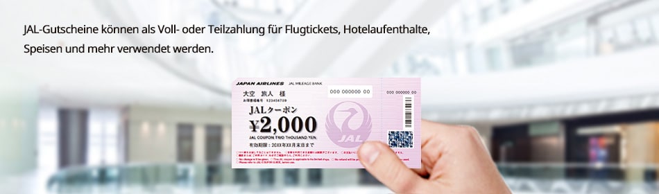 JAL-Gutscheine können als Voll- oder Teilzahlung für Flugtickets der JAL Group, Shopping an Bord, Hotelaufenthalte und vieles mehr verwendet werden.