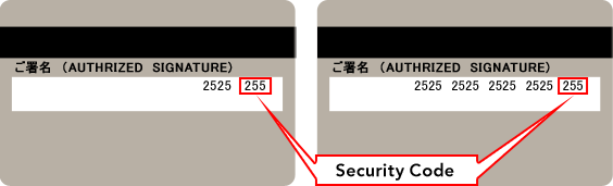 Security codes are 3 or 4-digit numbers printed on the front or the back side of the credit card. They are different from your credit card number and will not appear anywhere other than on the credit card.