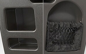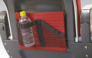 Net seat pocket for holding drink bottles and personal items