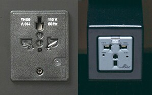 - Shared power ports installed between seats (767-300ER, 777-300ER)