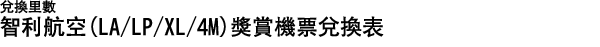 - * 下表沒有列出的航段不可使用獎賞機票。