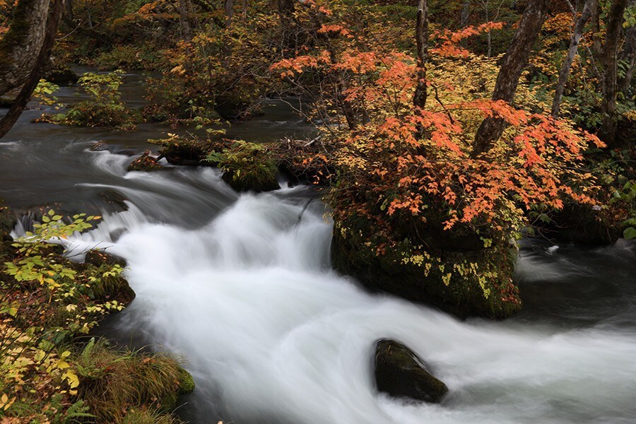 For hikers, an hour’s trek to and back from Choshi Otaki Falls—located upstream —is a singularly satisfying way to experience the Oirase Stream up close. This area is also known as “Waterfall Way” for its numerous waterfalls, and Choshi Otaki Falls—a massive 7 meters high and 20 meters wide—is the mightiest in the area. Close your eyes and let the fresh air and cool mist of the falling waters and heal you before embarking on your journey back.