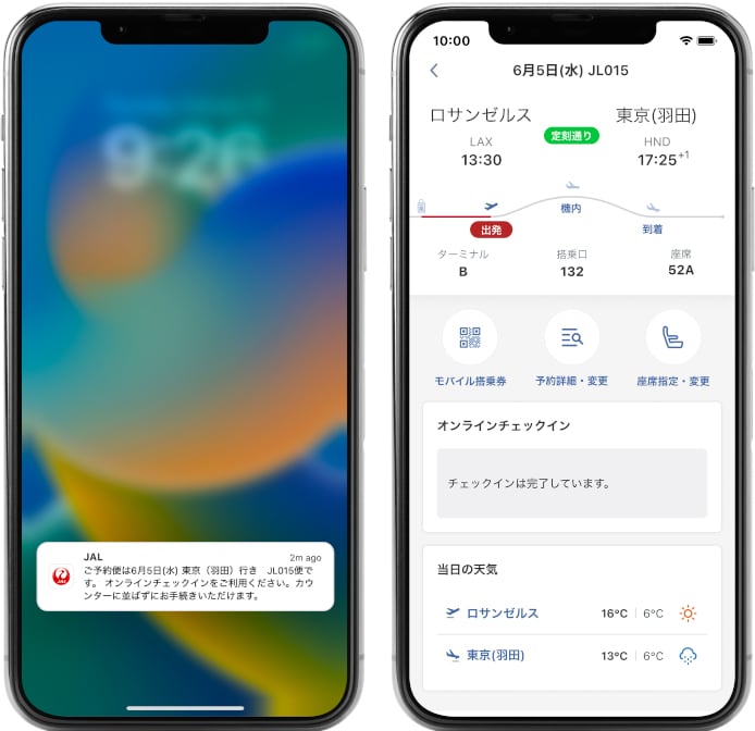 チェックイン締め切りのリマインドや搭乗開始など搭乗に関する便利な通知、また遅延や欠航など最新の運航情報をお知らせ!