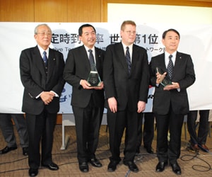 去る1月23日に発表させていただきましたが、米国の統計会社であるConducive Technology社より、2011年1〜12月にJALのネットワークとしてコードシェアを含めた「JAL便名」で運航される便、国内線・国際線合計約41万便の定時到着率が、世界の大手航空会社 39社中、「86.33%」で世界一の認定を受けました。