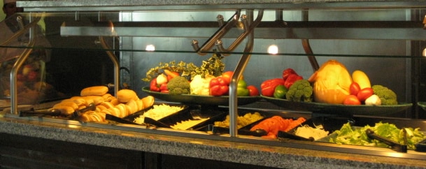 全食事付きとはいうものの、気になるのはその内容。「旅行代金もリーズナブルだし、もし口に合わなくても船の中ではどうしようもないし・・・」と、乗船までは、少々心配していた私。でも杞憂に終わりました。選択肢が多く、バラエティに富んだ料理は、どれも非常に美味しく、味にこだわりのある日本人もこれなら満足すること間違いなし。私も、海外旅行で、これほど食事でお腹も気持ちも満たされたのは初めてです。