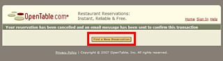 この画面が表示されると取消完了です。 新しく予約を取り直す場合は[Find a New Reservation]をクリックしてください。 |