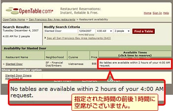 | [予約内容変更]ボタンをクリックすると、予約内容変更画面が表示されます。 予約内容を変更して[Find a Table]をクリックしてください。 |