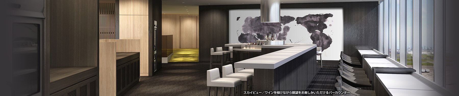 ロケーションを生かした抜群の眺望を楽しむも、照度を落とした大人の空間でゆったりと過ごすも、お客さまのご意向次第。「room to room」というコンセプトで、空間ごとに変化をもたせたJALサクララウンジ。お好みのエリアでごゆっくりお寛ぎください。
