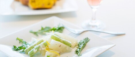 「JAL特製オリジナルビーフカレー」をはじめ、フレッシュなサラダ、「メゾンカイザー」のパンや、こだわりのスイーツなど、 上質なお料理を、季節ごとのワインや日本酒と合わせてお楽しみください。
