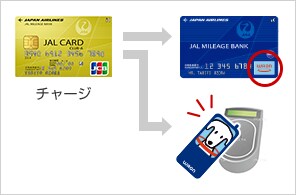 JAL・JCBカードとモバイルJMB WAONをセットで登録すると、JALカードからチャージでき、「チャージ」でも「お支払い」でもマイルがたまります。