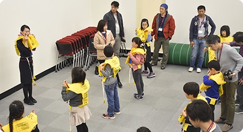 実際に膨らんだ時は「おぉぉぉ〜」と歓声があがり、空気がパンパンになっている救命胴衣を間近でご覧いただきました。