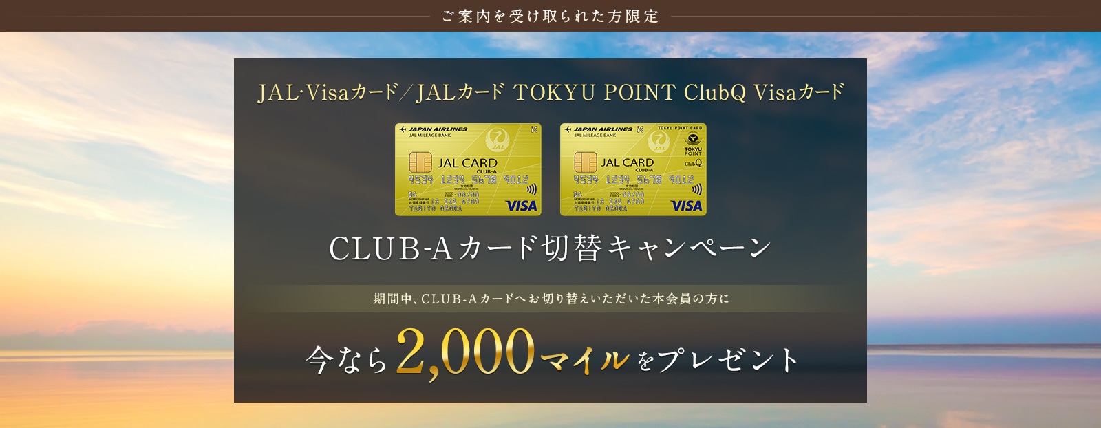- 【ご案内を受け取られた方限定】JAL・Visaカード/JAL TOKYU POINT ClubQ Visaカード CLUB-Aカード切替キャンペーン