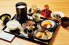 (右下)優しい一番出汁で始まる朝食は、旬の食材を使った品々と一人ずつ釜で炊いたごはんを。