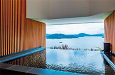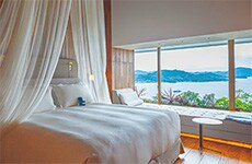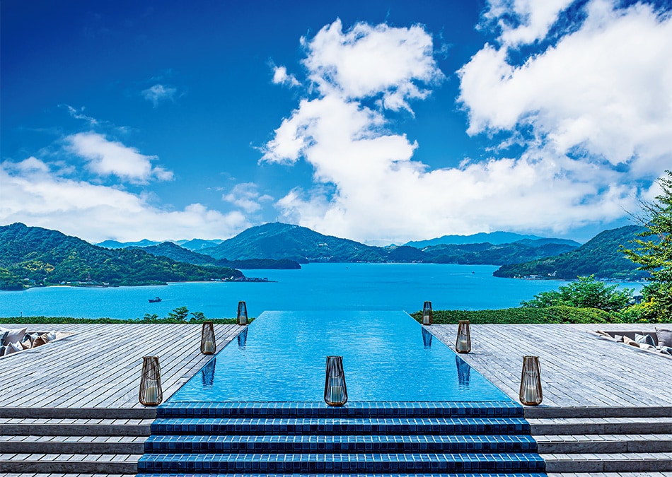 もともとは、周囲に展開する造船会社の迎賓館として誕生した。世界のVIPをもてなすための上質な造りと日本らしいもてなしの精神は、2007年にホテルとして生まれ変わった今も引き継がれている。イタリア語で「美しい眺め」を意味するホテル名のとおり、瀬戸内の多島美が最大の魅力。全45室はすべてオーシャンビューで、朝に、夕にと表情を変える絶景を見ながら寛げる。一室だけ用意されたメゾネットスパスイートは、海を見ながら施術を受けられるインスパルームやまるでインフィニティプールのような展望風呂も備えている。メインダイニングのテラス席は全面ガラス張りで、海を感じる開放感溢れる造り。滞在中は一歩もホテルの外に出たくなくなるくらいだ。