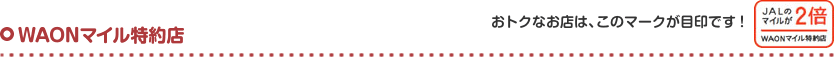 イオングループの店舗をはじめ、ニッコー・ホテルズ・インターナショナルやホテル JALシティなどのホテル、ファミリーマートやローソンなどのコンビニエンスストアやマクドナルド、ビックカメラなどのWAON加盟店でマイルがたまります。