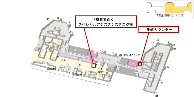 ・2F F検査場近く、スペシャルアシスタンスデスク横