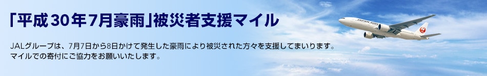 また、JALマイレージバンク会員の皆さまにマイルでご支援いただける『「平成30年7月豪雨」被災者支援マイル』を実施します。