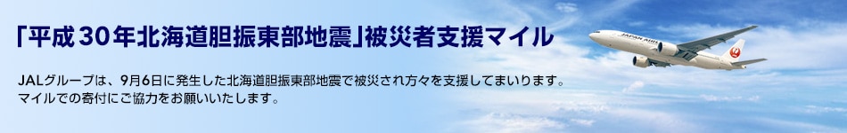 また、JALマイレージバンク会員の皆さまにマイルでご支援いただける『「平成30年北海道胆振東部地震」被災者支援マイル』を実施します。