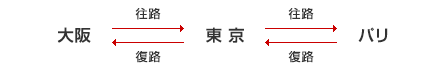 出発地から目的地へ向かう途中、遠回り(出発地の経度方向に経路をとる)はできません。また、目的地から出発地に戻る途中も遠回りはできません。
