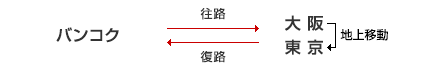 乗り継ぎ時における日本国内での地上移動区間を含めることはできません。