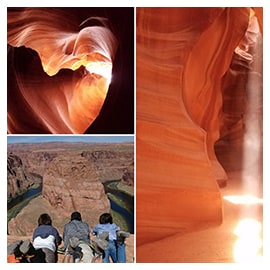 ロサンゼルスからアメリカン航空でフェニックスへ。テンピで1泊後、レンタカーでセドナに5泊滞在。その際、日帰りツアーで行ったアンテロープキャニオンと、途中に訪れたホースシューベントでのショット。高所恐怖症でもないのに、このショットのあとは親子3人でほふく前進。セドナ周辺にも絶景ポイントが多数あるが、ちょっと足を延ばせばまた違った自然と時間の芸術に出会える。アップタウンセドナの街はとてもお洒落で、四方を自然に囲まれながらゆっくりと、ひっそりと栄えているのがとても居心地がいい。ガラガラヘビのソーセージもご賞味あれ。