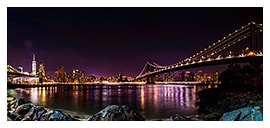 New YorkのLower Manhattanの夜景を