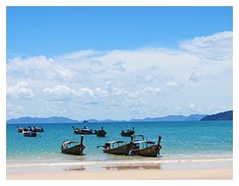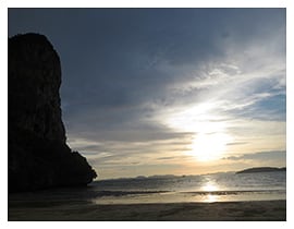週末+2日夏季休暇利用で、バンコクから南へ1時間のクラビへ。バンコクエアウェイズはラウンジ利用できて快適、おすすめのエアラインです。クラビは2度めだったので、土地勘がありますが、今回はライレイビーチを選択、このビーチへはボートを利用するため、少々時間がかかります。特に、帰りは人が集まらないと出発しないため、かなり待たされます。しかも、雨季で雨が降り出し、ボートでびしょぬれですが、これもまた楽しい思い出です。ライレイビーチは、朝日と夕日を鑑賞できます。アオナンビーチ等に比べると観光客も少なく、静かに過ごせます。砂浜なので、シュノーケリングは期待できず、小魚程度です。鍾乳洞やロッククライミングスポットあり。2種類のサルも鑑賞できます。ビーチ近くにローカルタイフードレストラン、インド料理、中華などあり、リーズナブルに食事ができます。レストラン近所は、まっくらでけっこうな数のホタルも飛んできました。マッサージも多く、ホテル以外でも結構楽しめます。数日ならば、わざわざ街に繰り出す必要もなく。ゆったりと静かにリフレッシュできました。