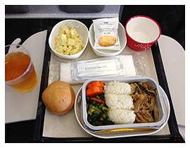 年間10回程度海外に出掛けて行きますが、飛行機に乗る際の楽しみが機内食ではないでしょうか?キャセイパシフィック航空は、機内食がなかなか美味しく、さらにハーゲンダッツのアイスクリームがデザートに出ることです。いつも楽しみにして乗っています。