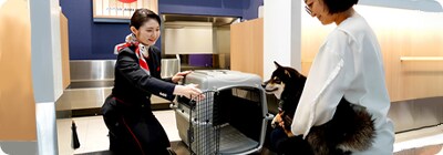 JALグループ便のご搭乗時にはお客さまのペットを大切にお預かりします。