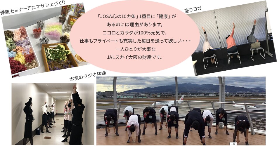 明るく元気にいきいきと働くことができるよう、われわれJALスカイ大阪が先頭に立って健康施策を推進していきましょう。