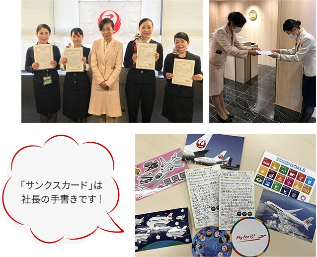 旅行に出発される楽しそうな様子を見るのが楽しかった。でも、JALの破綻をきっかけに今では「選んでいただけること」に感謝の気持ちでいっぱい。飛行機に乗られる一人ひとりのお客さまがいらっしゃるからこそ、自分は家族と生活ができているのだと思うと自然に感謝の気持ちが湧く。また、そういう気持ちになれること自体にも感謝。感謝の気持ちは思っているだけでは伝わらないこともある。ささいなことでも声に出して伝えることが大切。ありがとう・・・おおきに。